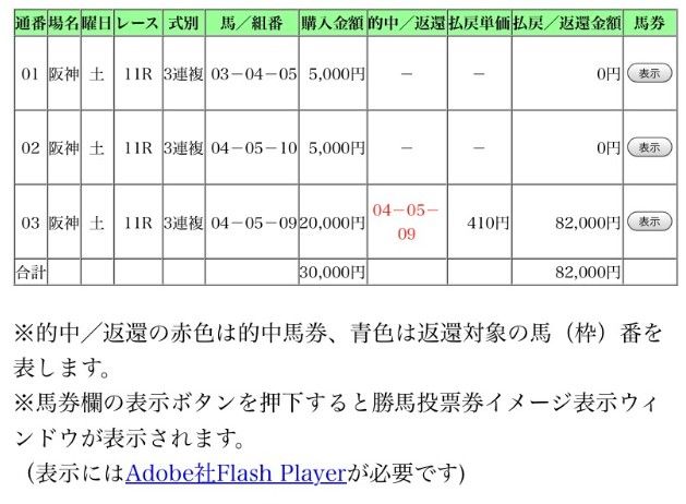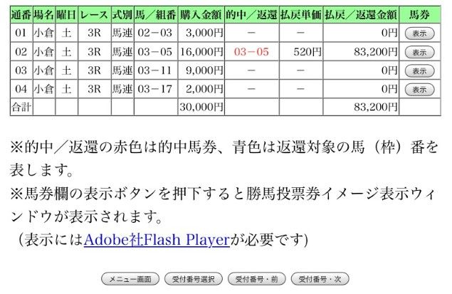 ダービー 5万円1点勝負レース指定的中で24万5000円の払い戻し