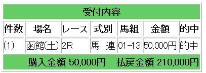上記情報馬のワンツー決着となり、馬連4.2倍的中で21万円獲得となりました。