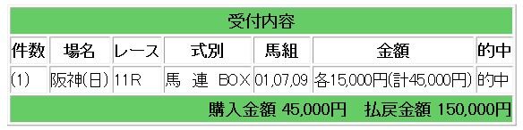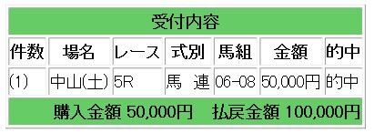 上記情報馬のワンツー決着となり、馬連2倍的中で10万円の払い戻しとなりました。