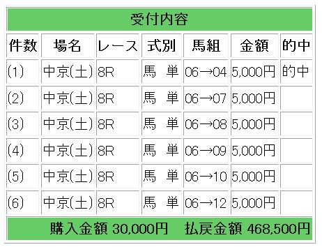 会員様情報では馬単1点指示で7.8倍的中となりました。