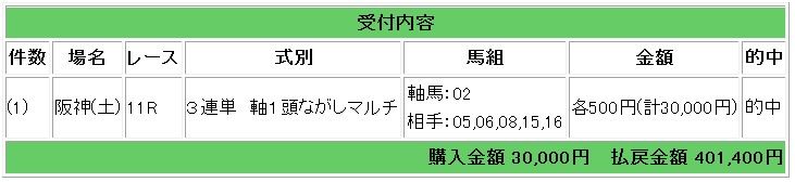 宝塚記念 262.5倍的中 39万円獲得