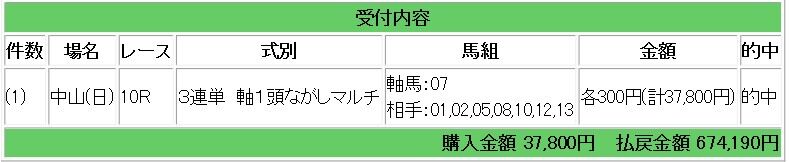 秋華賞 10/13 709.7倍的中となり113万5520円獲得