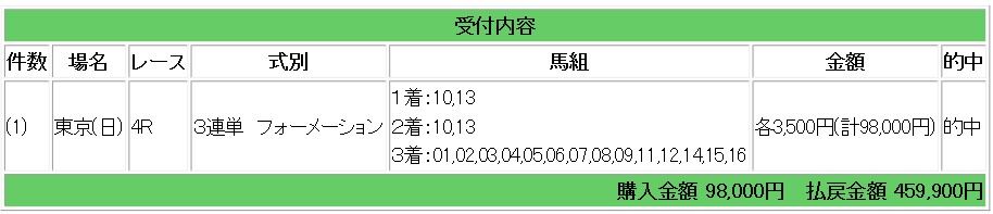 東京4レース(管理人の買い目・購入額公開レース)