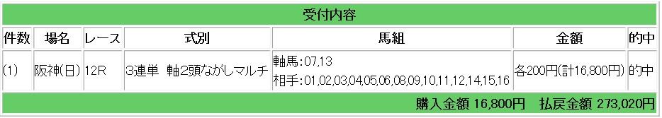 阪神JFは62万3500円の払い戻し