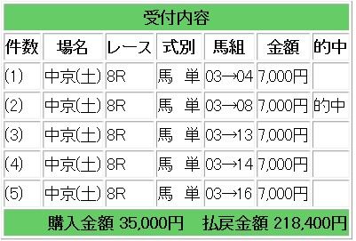 結果は上記2頭の情報馬が2,3着となり、219.7倍的中となりました。