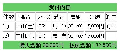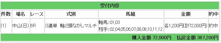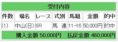 中山6レース(5万円1点勝負レース)