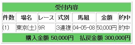 会員様には上記情報馬からの3連複1点指示で6倍的中となり、30万円の払い戻しとなりました。