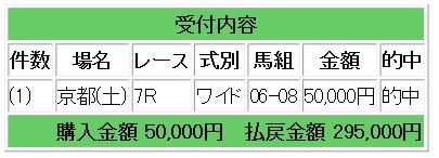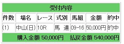 上記2頭のワイド指示で5.9倍的中となり、29万5000円の払い戻しとなりました。